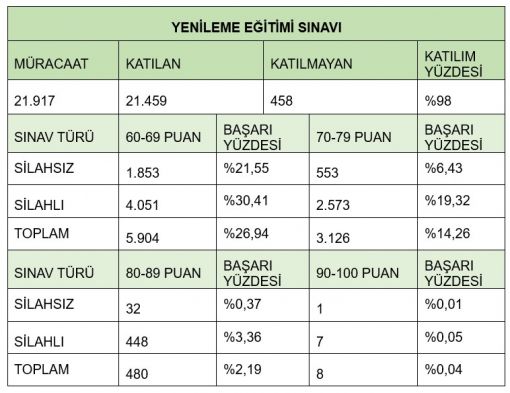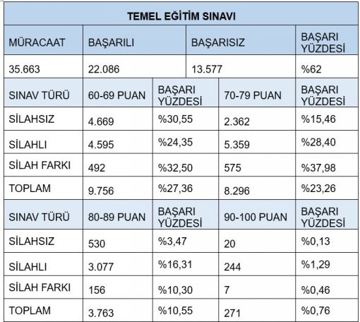Sonuçlara göre temel eğitim sınavından 19.769 aday, yenileme eğitimi sınavından 7.430 adayın 60 puanı geçerek alan eğitim sınav puanı hesaplanacaktı.