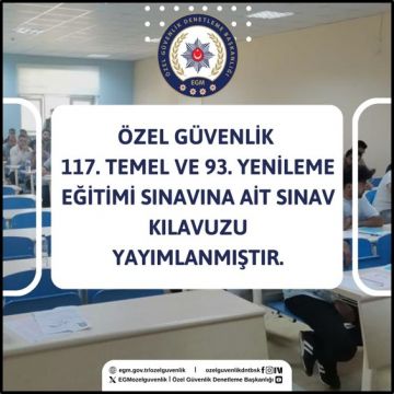 Özel Güvenlik 117. Temel Eğitim ve 93. Yenileme Eğitimi Sınavına ait Sınav Kılavuzu için TIKLAYINIZ.