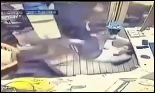 Aldığı darbelerle yere düşen görevliye saldırı yerde de devam etti.